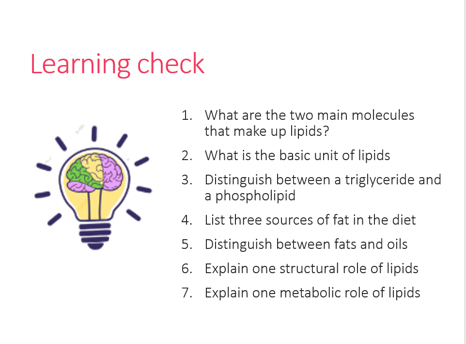 1.2.1. outline the structures and metabolic roles of carbohydrate, lipid and protein, and identify nutritional sources of each