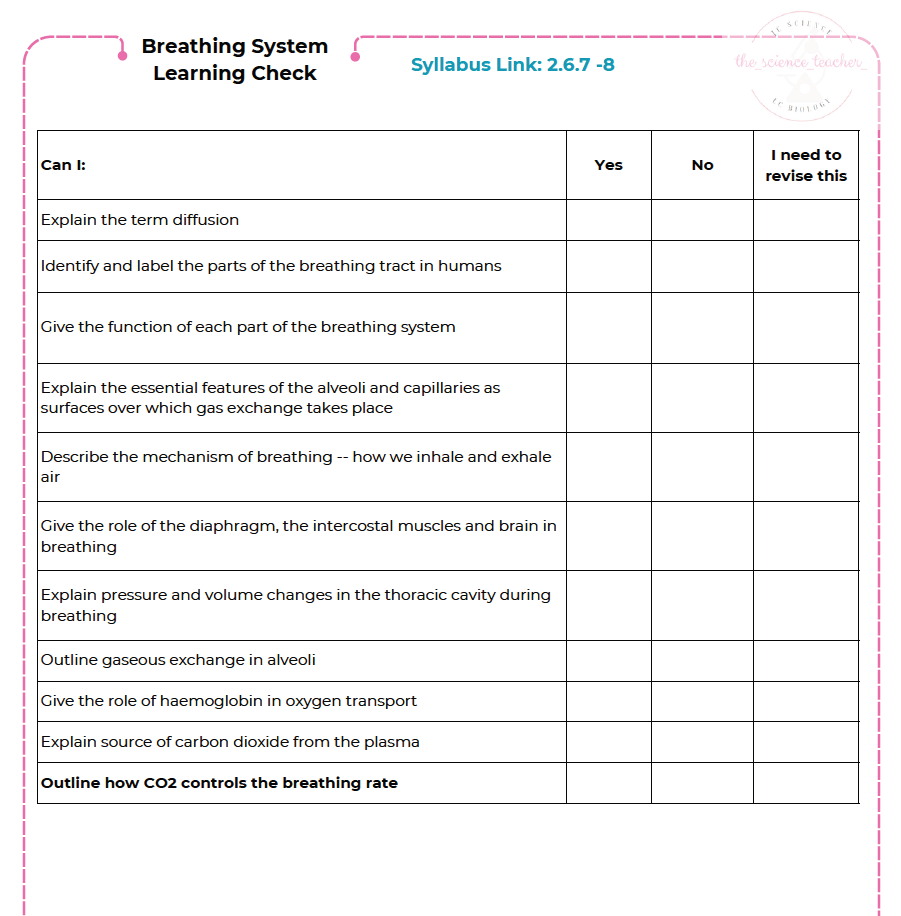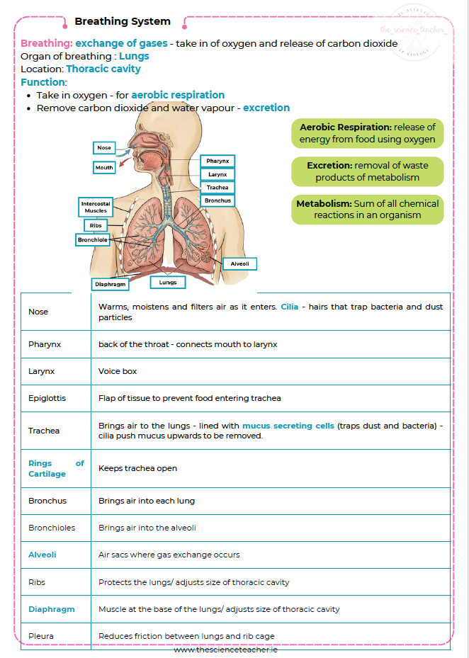 Condensed Revision Notes: Breathing System (2.6.7-8)