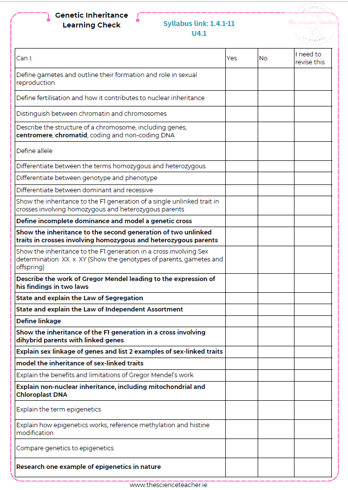 This is a PDF document containing the essential information for the topic of Genetic Inheritance (1.4.1-11)